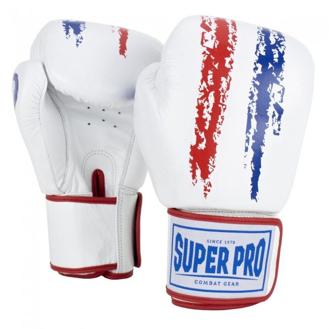 Super Pro Warrior Lederen (kick)bokshandschoenen Rood/Wit/Blauw