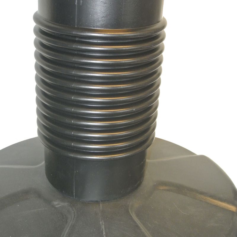 Het verbindingsstuk tussen onder- en bovenzijde veert licht mee, waardoor de geluidsreductie optimaal is. De voet zal hierdoor nog vaster op de grond blijven staan. De voet van de bokspop is te vullen met zand, water of grind, waardoor die een gewicht heeft van +/- 100kg!